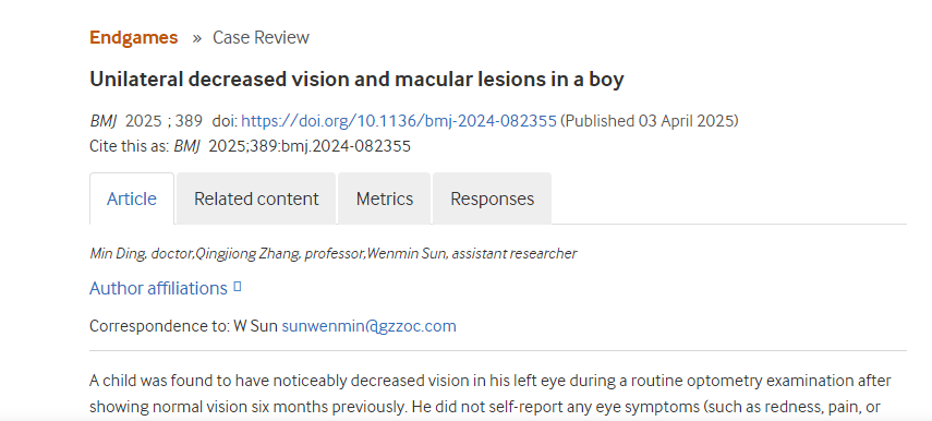 Ding M, et al. Unilateral decreased vision and macular lesions in a boy. BMJ 2025;389:bmj.2024-082355.