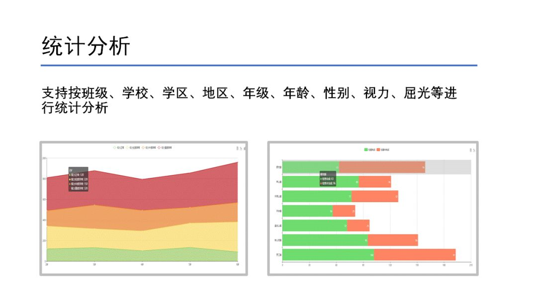 ·檢查結(jié)果的智能分析匯總,為醫(yī)院、學(xué)校、衛(wèi)健部門(mén)、教育部門(mén)提供科學(xué)的數(shù)據(jù)統(tǒng)計(jì)和完整的檔案管理