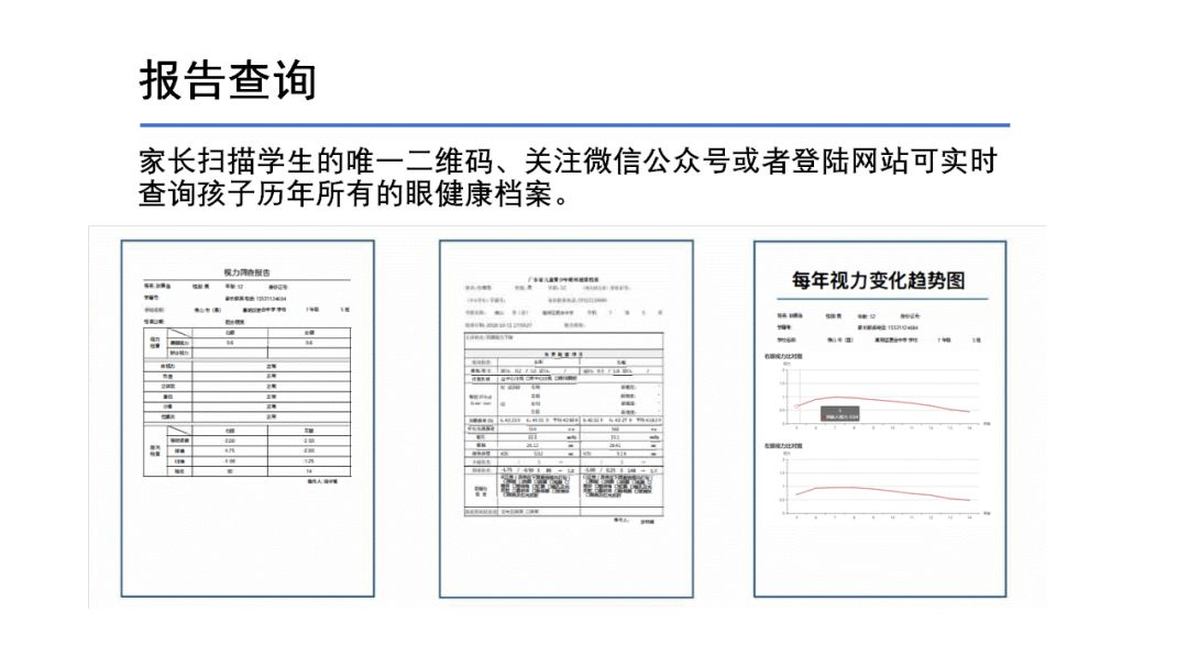 ·自動(dòng)生成篩查二維碼,家長(zhǎng)掃描二維碼可實(shí)時(shí)查詢(xún)孩子歷年所有的眼健康檔案