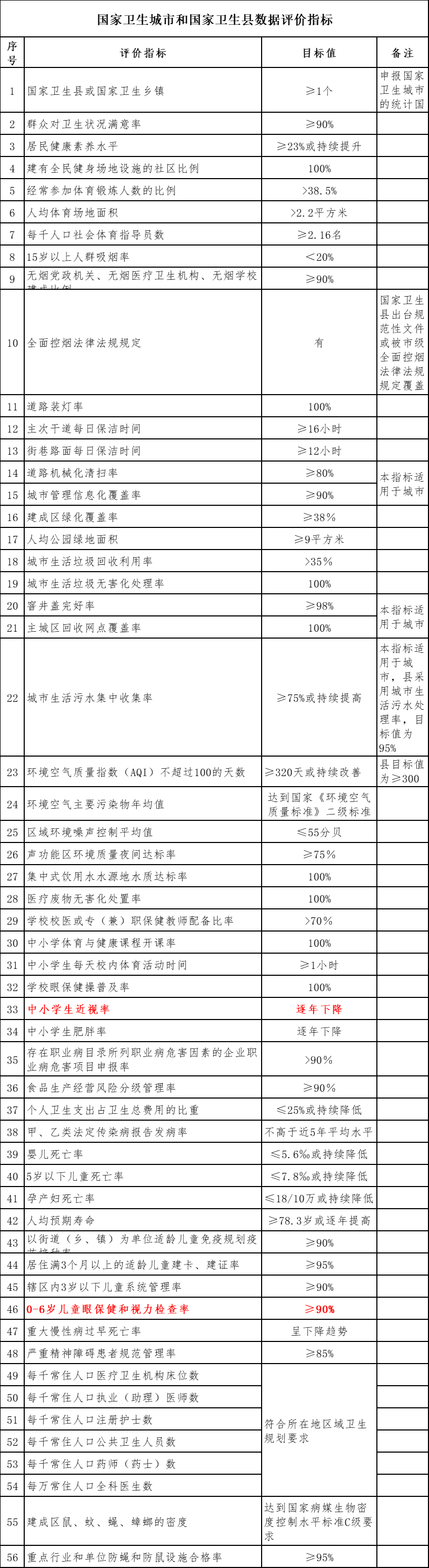 國家衛(wèi)生城市和國家衛(wèi)生縣標準