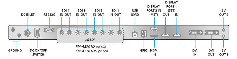 FM-A2701D具有HDMI,DisplayPort和DVI的視頻連接。 FM-A2701DS增加了對3G SDI的支持,它將四鏈路格式作為雙樣本交錯(cuò)或方形分割,為其提供了令人印象深刻的信號輸入功能選擇。 與所有FSN監(jiān)視器一樣,這些型號設(shè)計(jì)用于快速檢測傳入視頻,這要?dú)w功于強(qiáng)大的模式表。